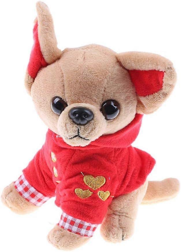 Dimensions:17cm/6.7inches.(Height), great size for hugging or carrying around. High Quality:The dog plush toy are made of soft cloth and stuffed with cotton wool.The material with no added fillers,are safe to be used around children. Perfect Plush Toy:Super soft,feels like you are hugging a cloud.100% soft touching experience,give you unexpected comfortable hand feel. Wide Application:Perfect gift for your kids,families,friends and dog lovers.Cute plush toy with lifelike Chihuahua dog design is very cute.Perfect for desktop decoration,dog toy,doll house supplies,kids goodie bag filler,plant decoration,novelty toy school prize gifts,etc. Package:You will get 1 piece dog plush toy.4 colors to choose from:pink,red,rose red,blue.