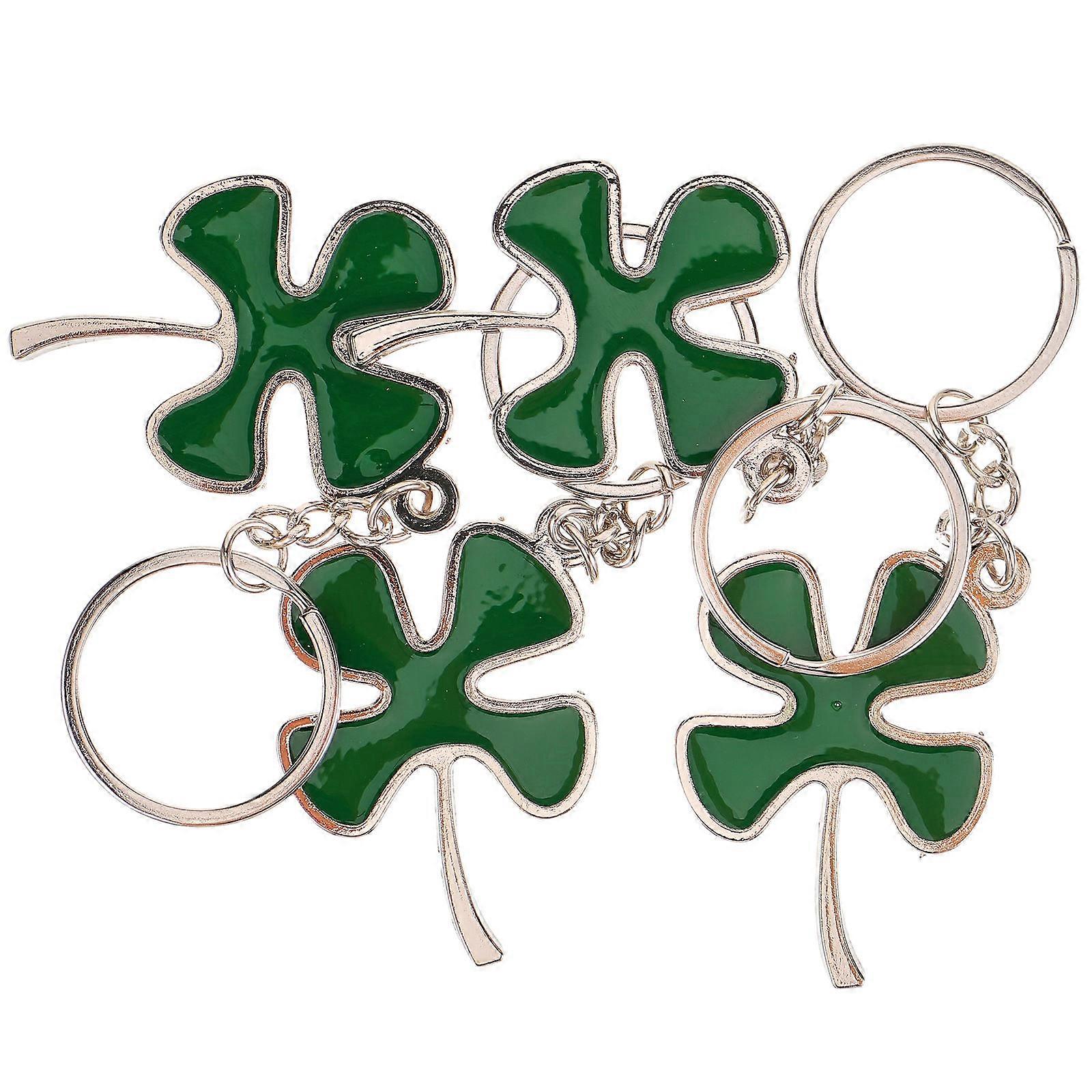 Lucky Cloverleaf Keyring Metal Clover Keychain Green 3.9×1.6×0.2in For Bag Decoration 4Pcs