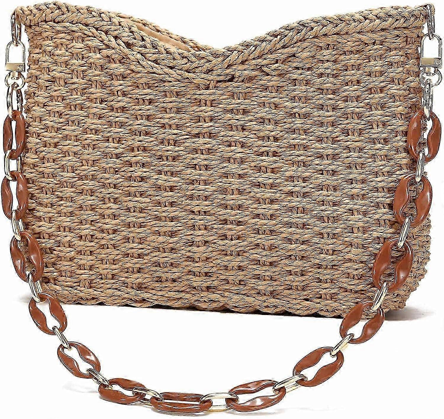 Acrylic,Polyester Imported [STRAW PAPER MATERIAL] YIKOEE straw bag for women is crafted from environmentally friendly paper and polyester lining and matched with high-quality gold hardware, which make it stylish. [PERFECT SIZE SUMMER BAG] 9.4"L3.2"W7.5"H. The straw purses have enough capacity with a main zippered compartment and a open pocket to store essentials such as sunglasses, cell phone [VERSATILE CHAIN STRAP] The straw beach bag comes with a detachable chain assembled from high-quality metal and acrylic, allowing for easy conversion from shoulder to hand-carried. [FASHIONABLE ACCESSORY] This summer purses for women is perfect for summertime and beach outings, adding a stylish touch to your casual outfits. It is a wonderful item for summer holiday! [AS A PERFECT PRESENT] It can be easily match with casual clothes. The straw handbags for women make a great gift for your wife, daughter or friend during a summer trip or seaside holiday. Acrylic,Polyester Imported [STRAW PAPER MATERIAL] YIKOEE straw bag for women is crafted from environmentally friendly paper and polyester lining and matched with high-quality gold hardware, which make it stylish. [PERFECT SIZE SUMMER BAG] 9.4"L3.2"W7.5"H. The straw purses have enough capacity with a main zippered compartment and a open pocket to store essentials such as sunglasses, cell phone [VERSATILE CHAIN STRAP] The straw beach bag comes with a detachable chain assembled from high-quality metal and acrylic, allowing for easy conversion from shoulder to hand-carried. [FASHIONABLE ACCESSORY] This summer purses for women is perfect for summertime and beach outings, adding a stylish touch to your casual outfits. It is a wonderful item for summer holiday! [AS A PERFECT PRESENT] It can be easily match with casual clothes. The straw handbags for women make a great gift for your wife, daughter or friend during a summer trip or seaside holiday.