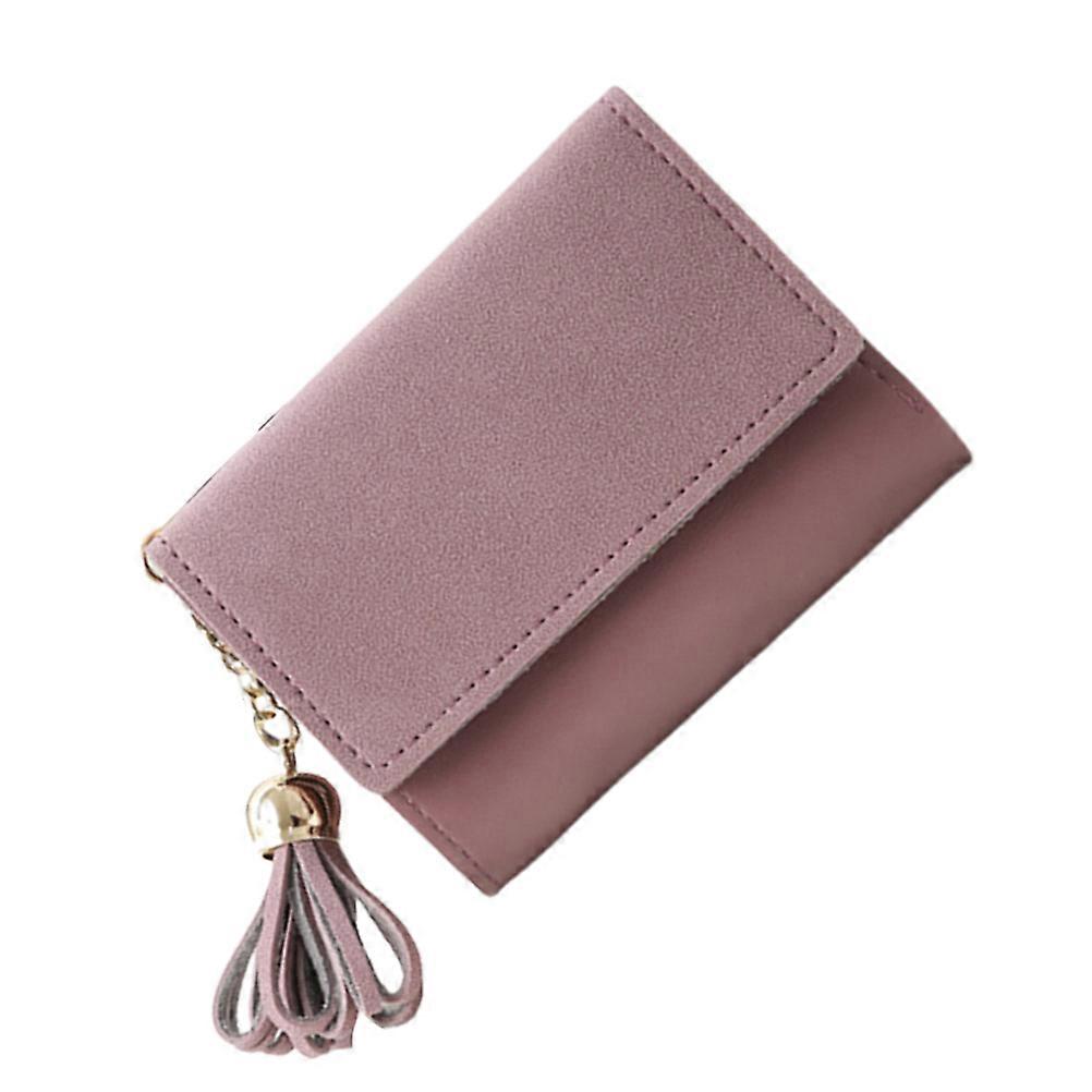 Women Fashion Wallet Trifold Purse with Tassel Design Made of PU Pink Portable for Storage Money 7.5 x 4.5 inches