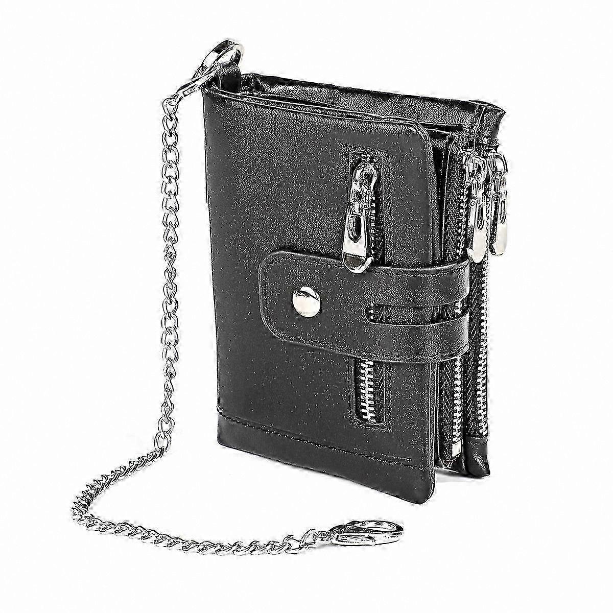 Men's Leather Bifold Wallet with Chain, RFID Blocking, Zippered Coin Pocket, Anti-Theft Design Purse for Men