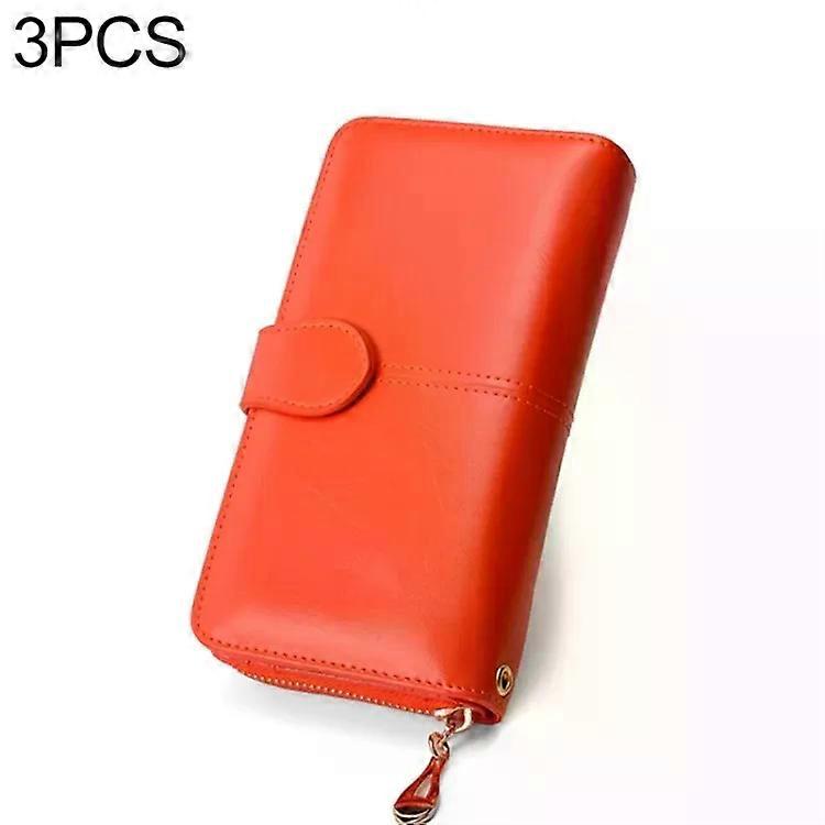 Multifunction Leather Wallet for Women-3 PCS Trifold Coin Purse Clutch (Black/Orange) Orange