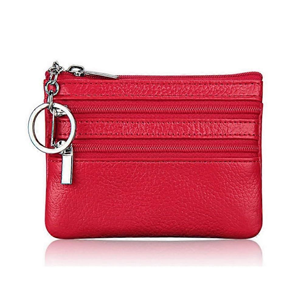 Fashionable women's leather wallet, clutch, one/two zippers, short, small, coin purse, soft mini card holder, 2 zippers, red, one size.
