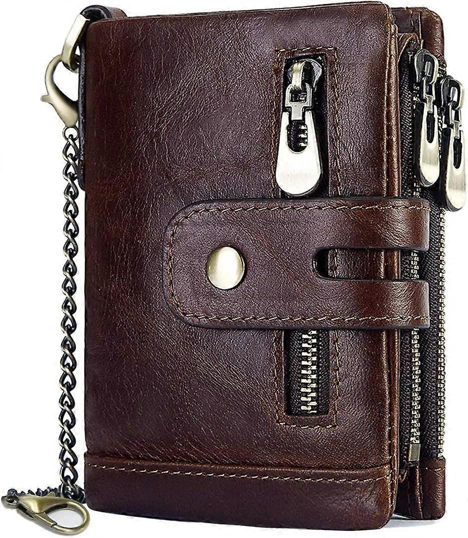 Men's Wallet RFID Protection Men's Leather Wallet with Chain Double Fold Men's