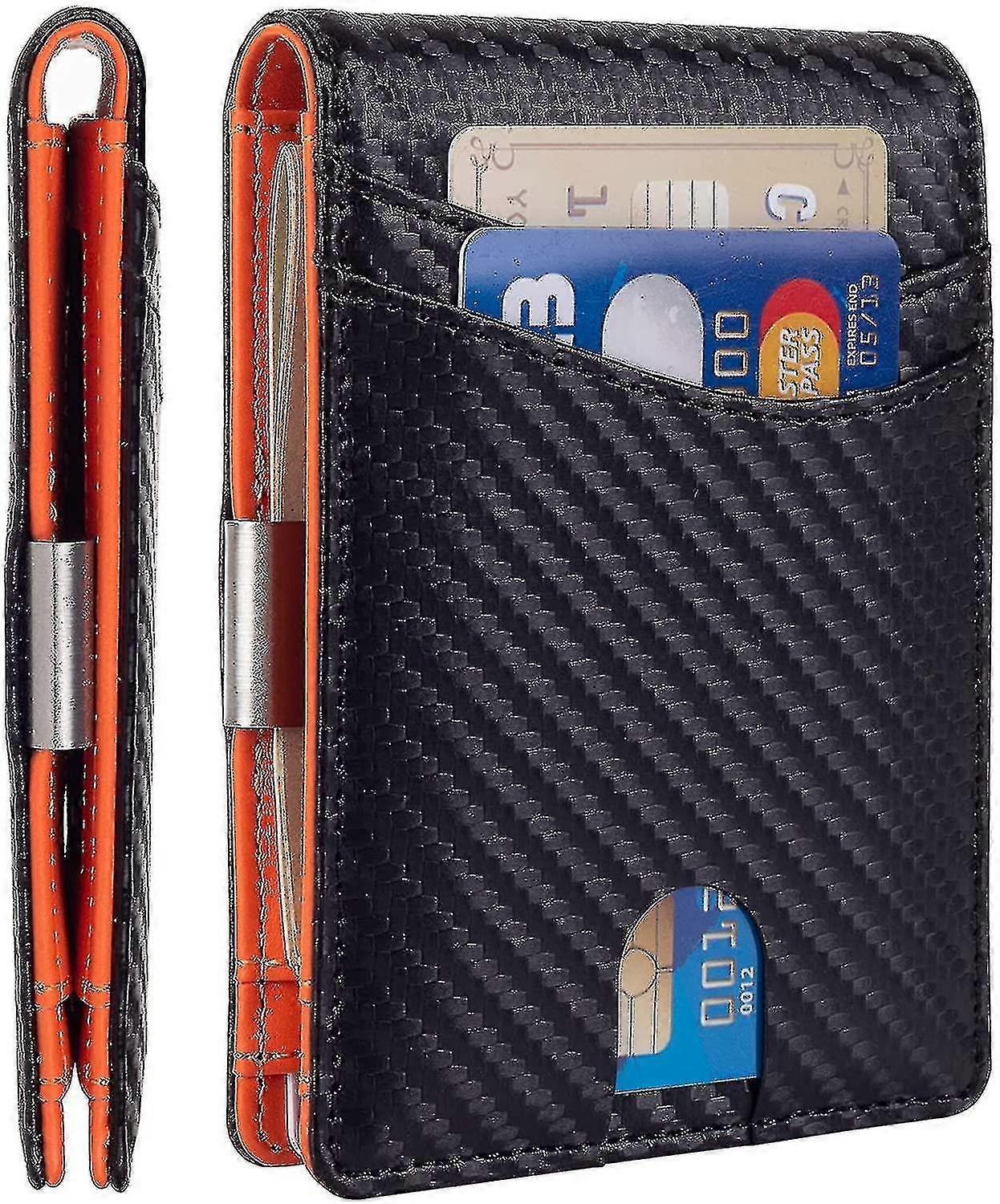 Minimalist Slim Wallet For Men, Premium Leather Wallet With Money Clip, Rfid Blocking Front Pocket Stylish Bifold Wallet (black & Orange)