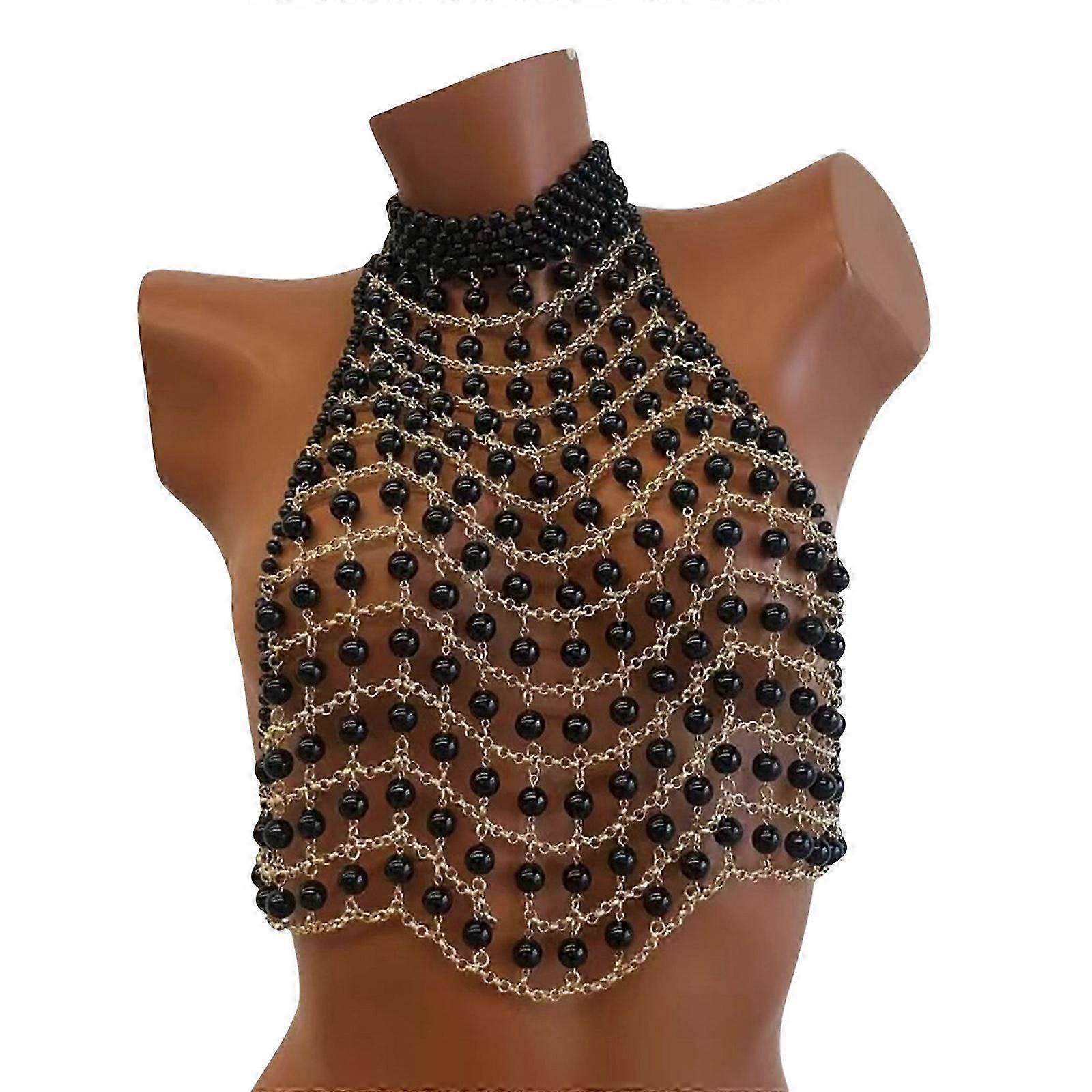 Portable Handmade Pearls Body Chain Adjustable Bra Jewelry Accessory for Confident Stylish Outfits Daily Casual Wear