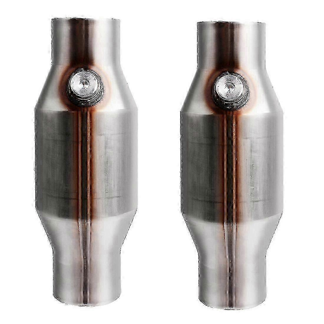 2Pcs 2.5inch Spun Universal Catalytic Converter High Flow Stainless Steel 425250 Exhaust Catalytic