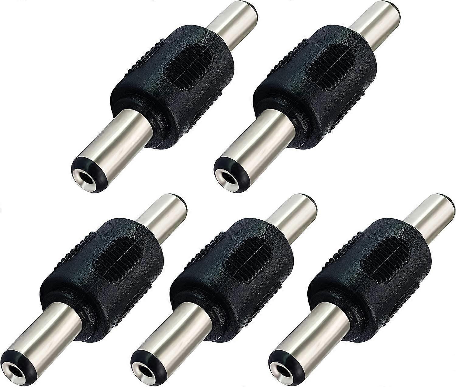 DC 5.5mm x 2.1mm Power Adapter, DC Barrel Power 2.1mm x 5.5mm Male to Male Connector Coupler, for CCTV Camera, LED Light, Mini Fan(5 Pack/Male)