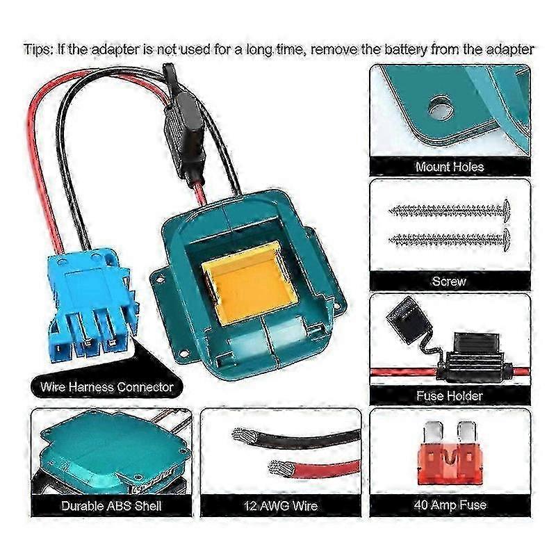 Power Wheel Adapter for 18V Battery with Wire Harness Connector & Fuse for Peg-Perego 12 Volt Power