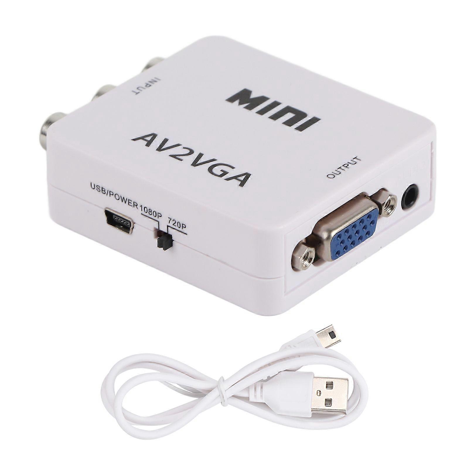 480P Mini Composite AV to VGA Adapter TV Set Top Box Audio Video Converter (White)