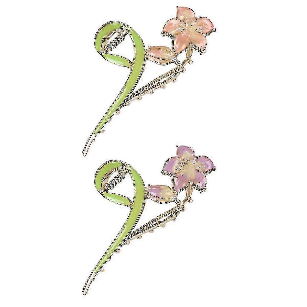 Hairpin claws for women Flower Lily 2 large non-slip hairpins with shiny cute hair claws