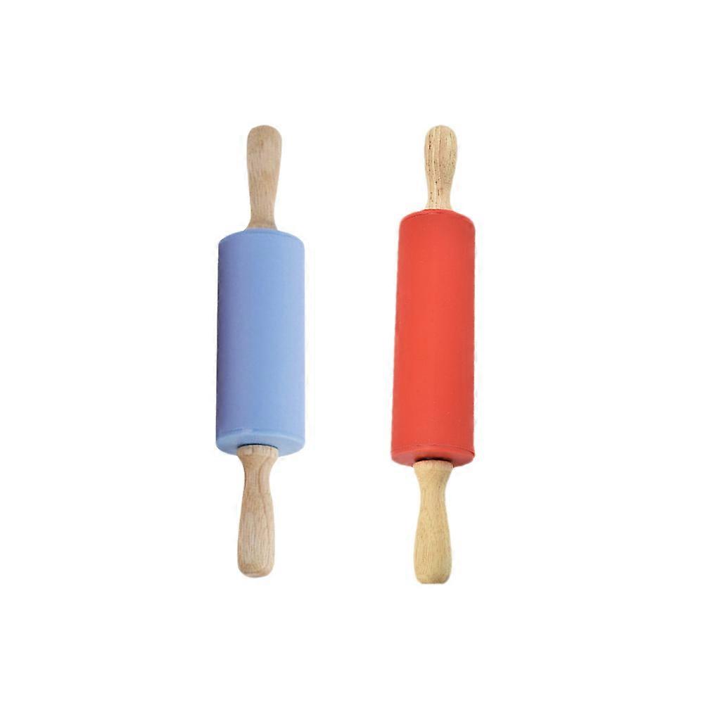 Bakery Rolling Pin Wooden Handle Dough Pastry Roller Fondant Cake Noodle Baking Tool Kitchen Supplies for Home Users Red 2Set