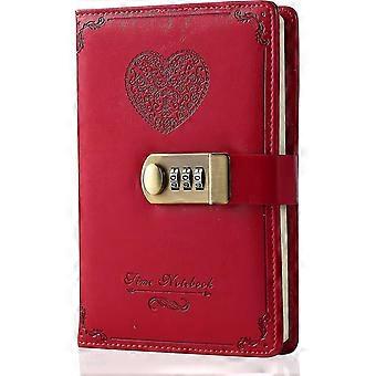 مذكرات مع قفل للبنات - دفتر يوميات جلدي بقفل كلمة مرور، دفتر يوميات سري لطيف مع قفل مركب للنساء البالغات، مقاس B6، 5.3 × 7.8 بوصة
