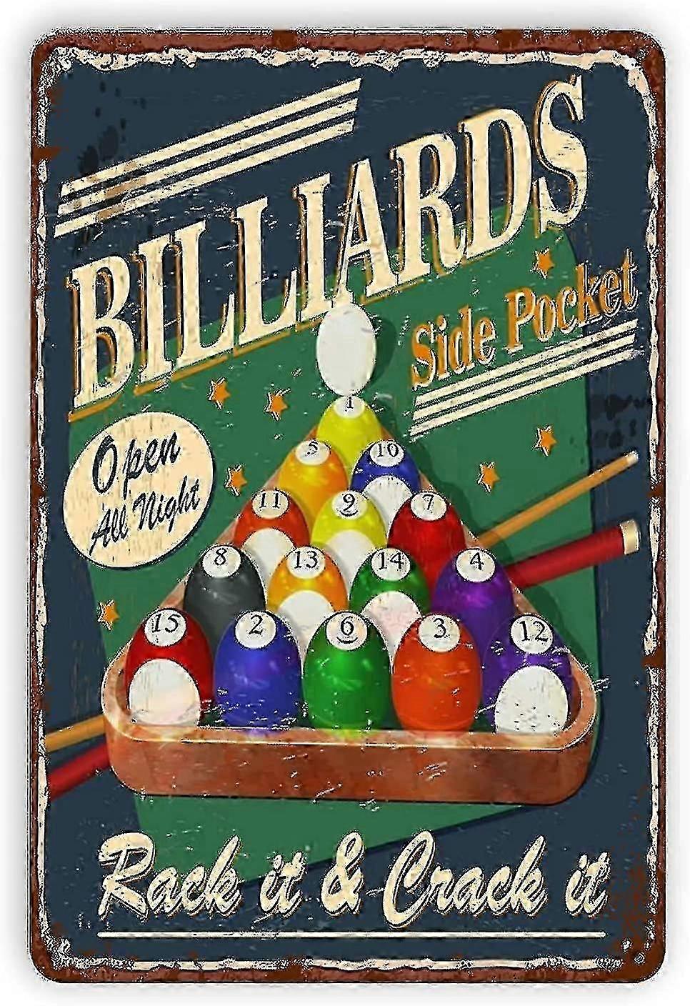 Billiards Fans Metal Signs Home Decor Billiards Side Pocket Tin Poster Plaque For Club Garage Office Wall Decoration 8x12 Inches
