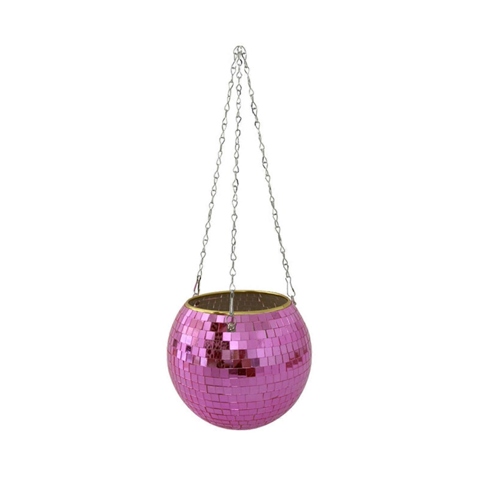 Mirror Disco Ball Hanging Planter Basket Shining Flower Pot Window Plant Holder