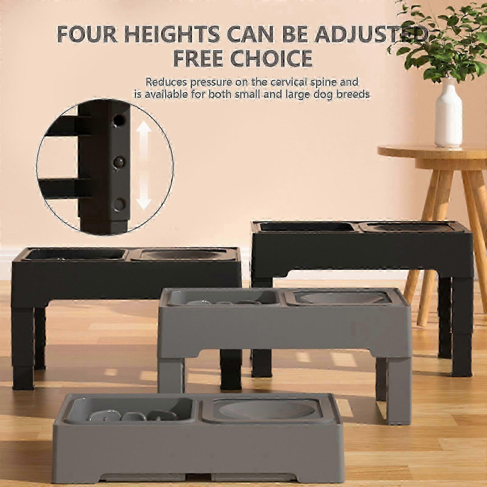 Elevated Pet Feeder 4 Height Adjustable Dog Stainless Steel Non-Slip Bowl