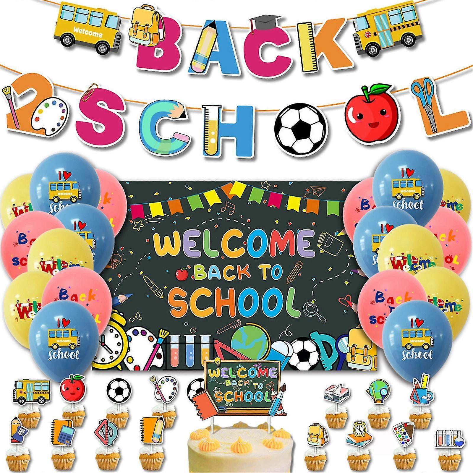 Welcome Back To School Party Decorations Opening Season Banner Ruler School Bus Cake Topper Set Back To School Party Supplies