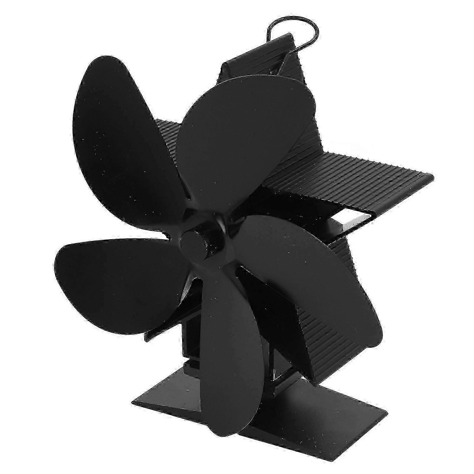5 Blade Wood Stove Fan Black Automatic Start Non Electric Safe Heat Powered Fireplace Fan
