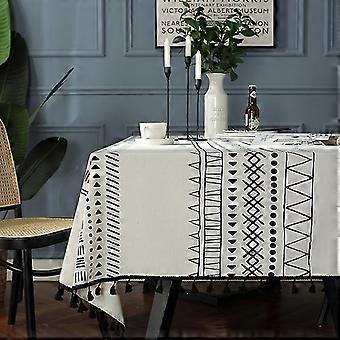 Farmhouse Black Geometric Print Western Dining Table Black Fringed Rectangular Table Cloth Coffee Table Table Cloth