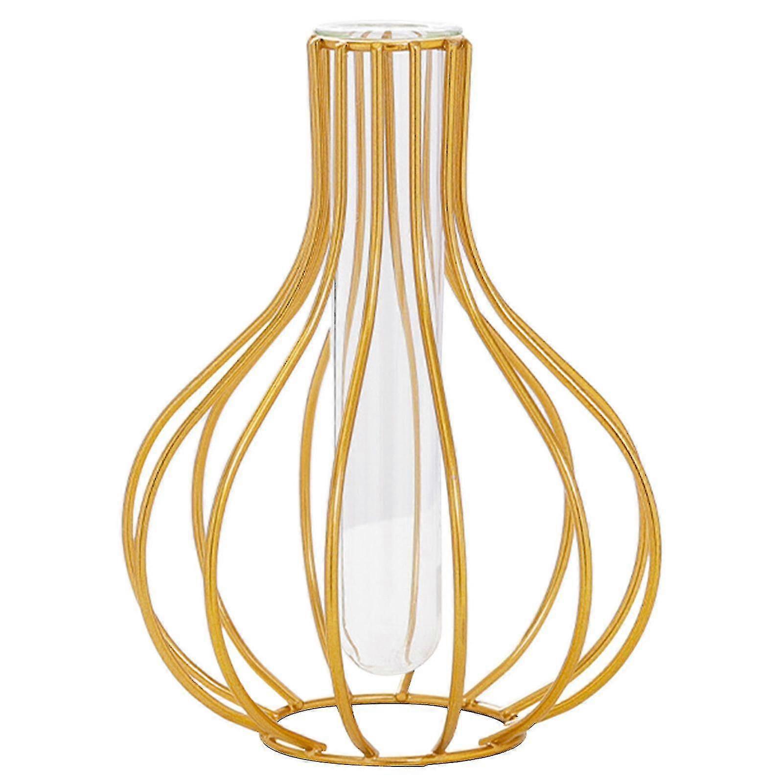 Desktop Glass Planter Flower Vase - With Metal Holder, Desktop Succulent Terrarium Container for Hydroponic Plant Home Decoration
