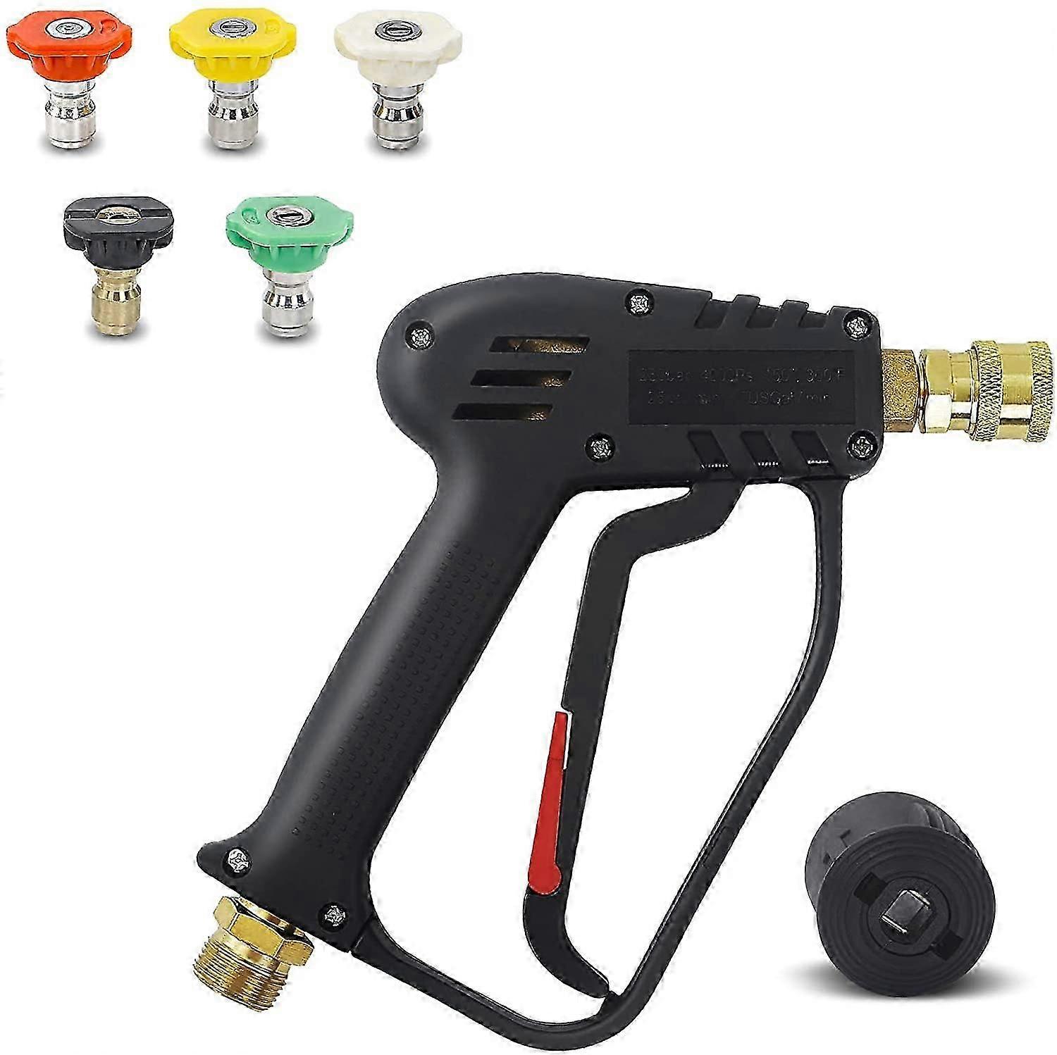 High Pressure Washer Gun, 4000 PSI, M22 (14mm) Interface and Karcher Quick Interface with 5 Water Nozzle Tips for Car Washing