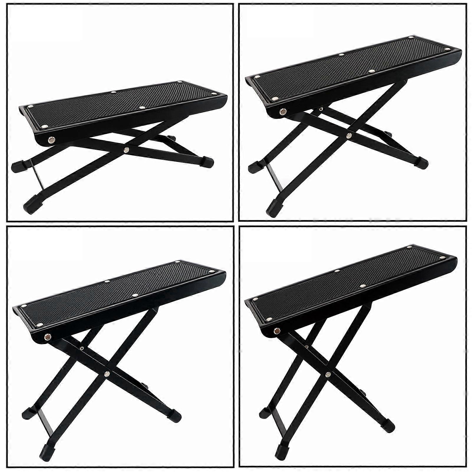 Guitar Footstool Height Adjustable 4 Positions Anti Slip Rubber Pedal High Strength Metal Folding Guitar Foot Rest
