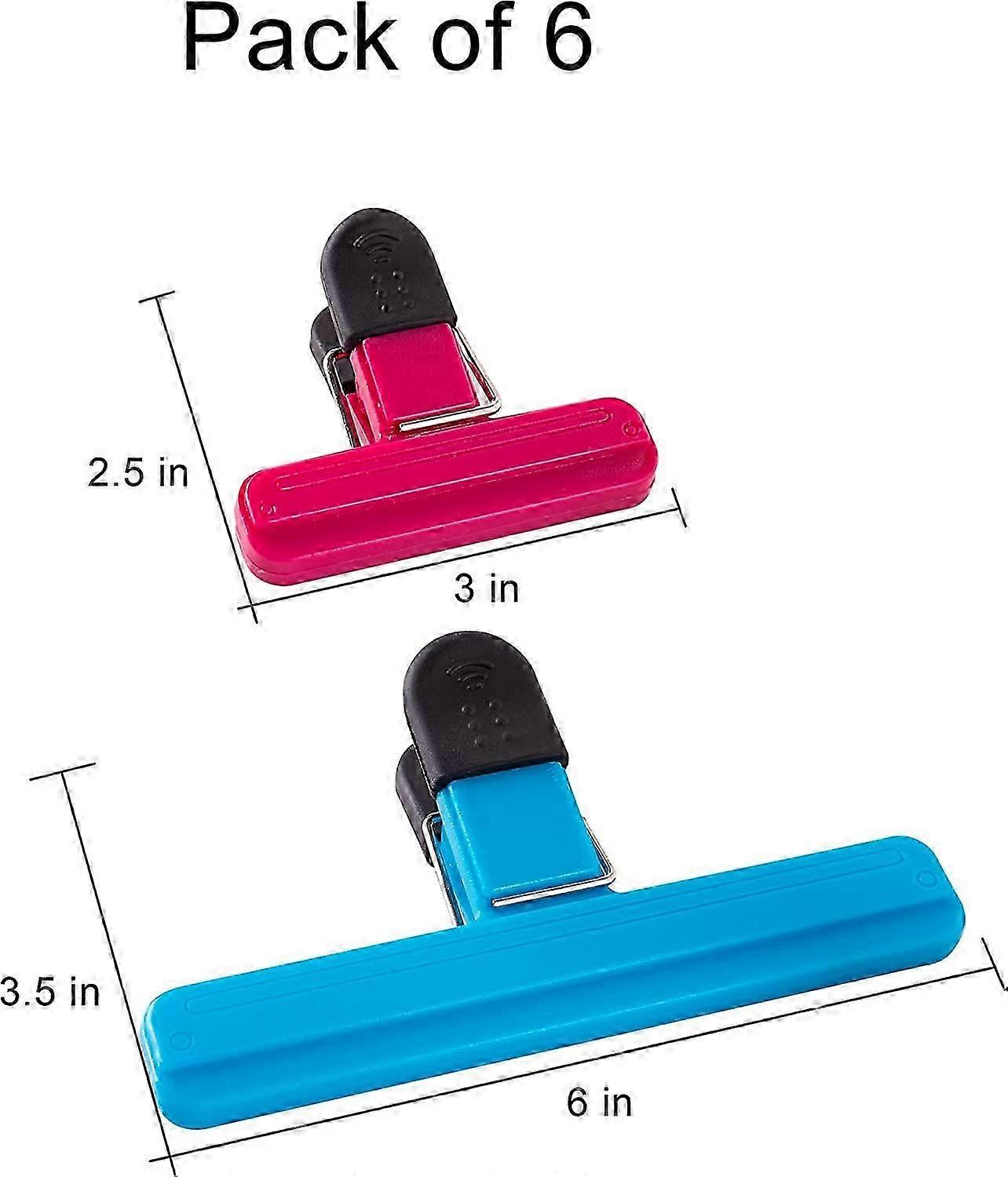 Bag Clips for Food Storage 2 Sizes - 6 Pcs Sturdy, Airtight, Reusable Clips for Sealing Freezer Bags-Ideal for Home & Kitchen - Assorted Colors