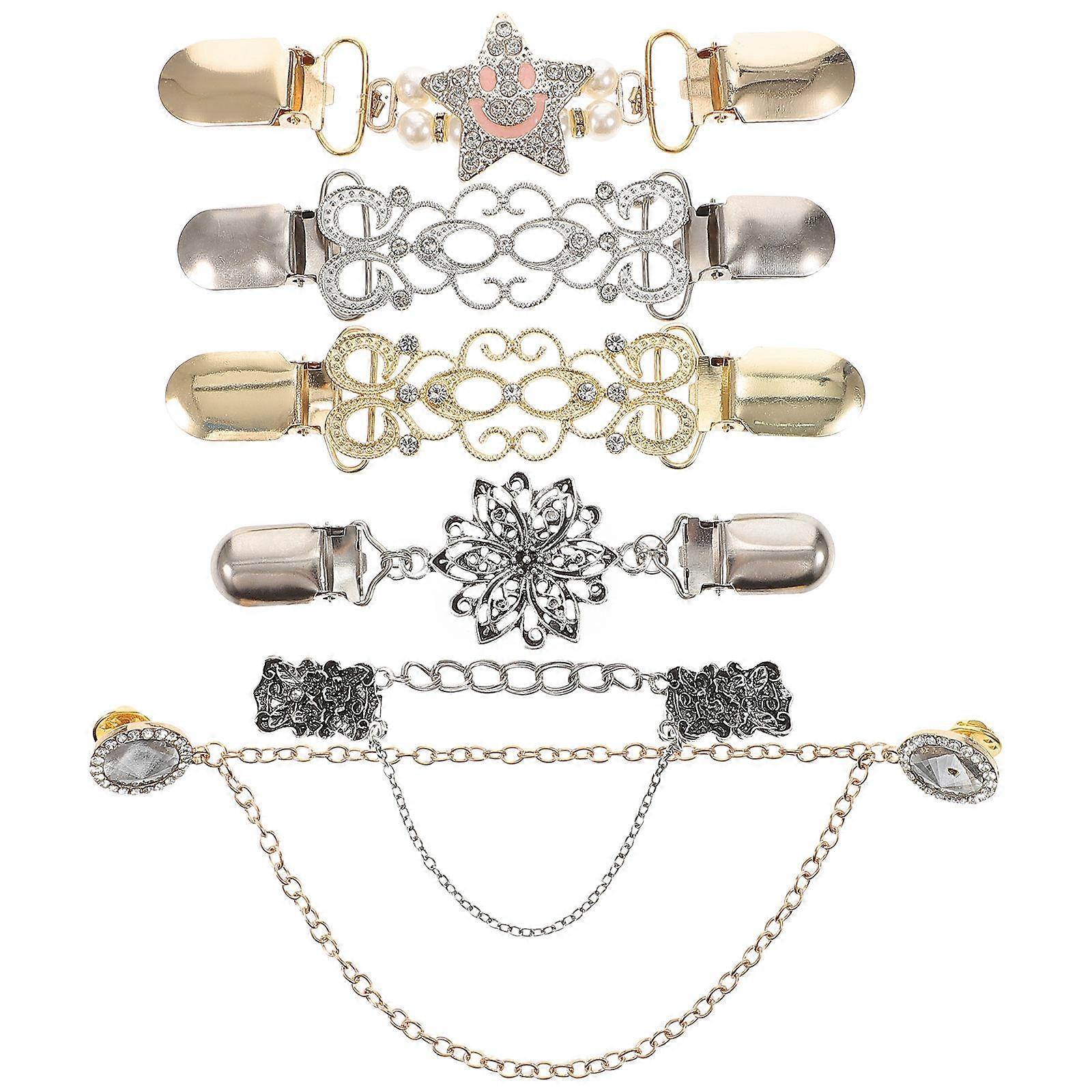 Retro Cardigan Clips 6 Pcs Vintage Flower & Star Brooch Pins for Women's Sweaters, Shawls, Dresses, and Wraps Stylish Clothing Clasps, Random