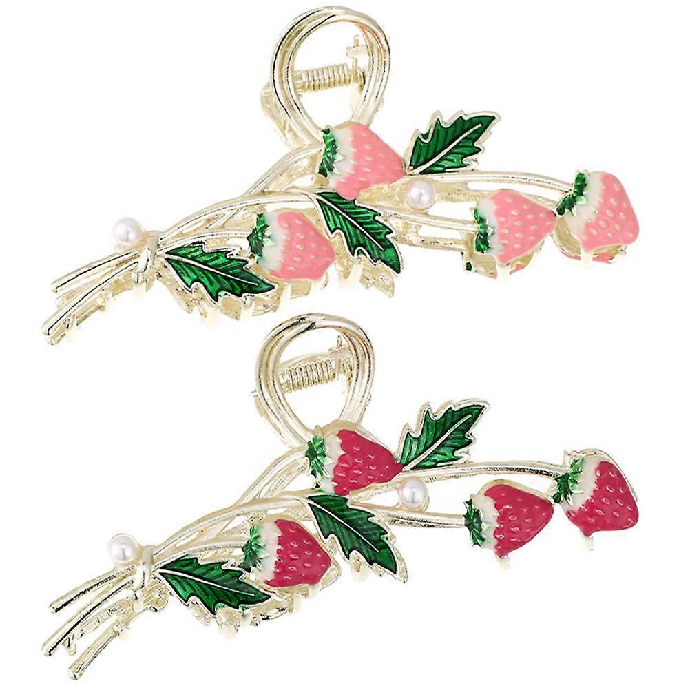 Strawberry Hair Claw Clips Durable Non Slip Decorative Jaw Clips for Women Elegant Strong Design Pink Red