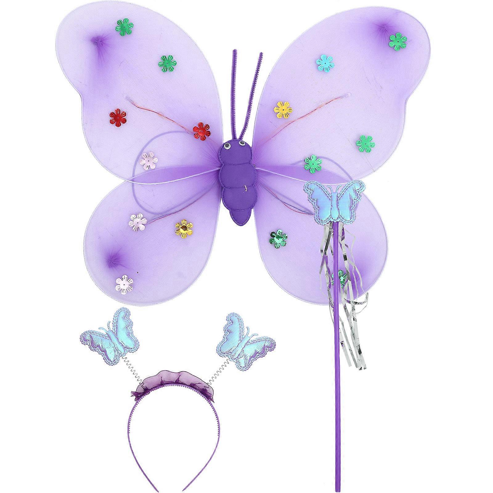 Bright Purple Butterfly Fairy Wing Wand Headband for Craft 1Set