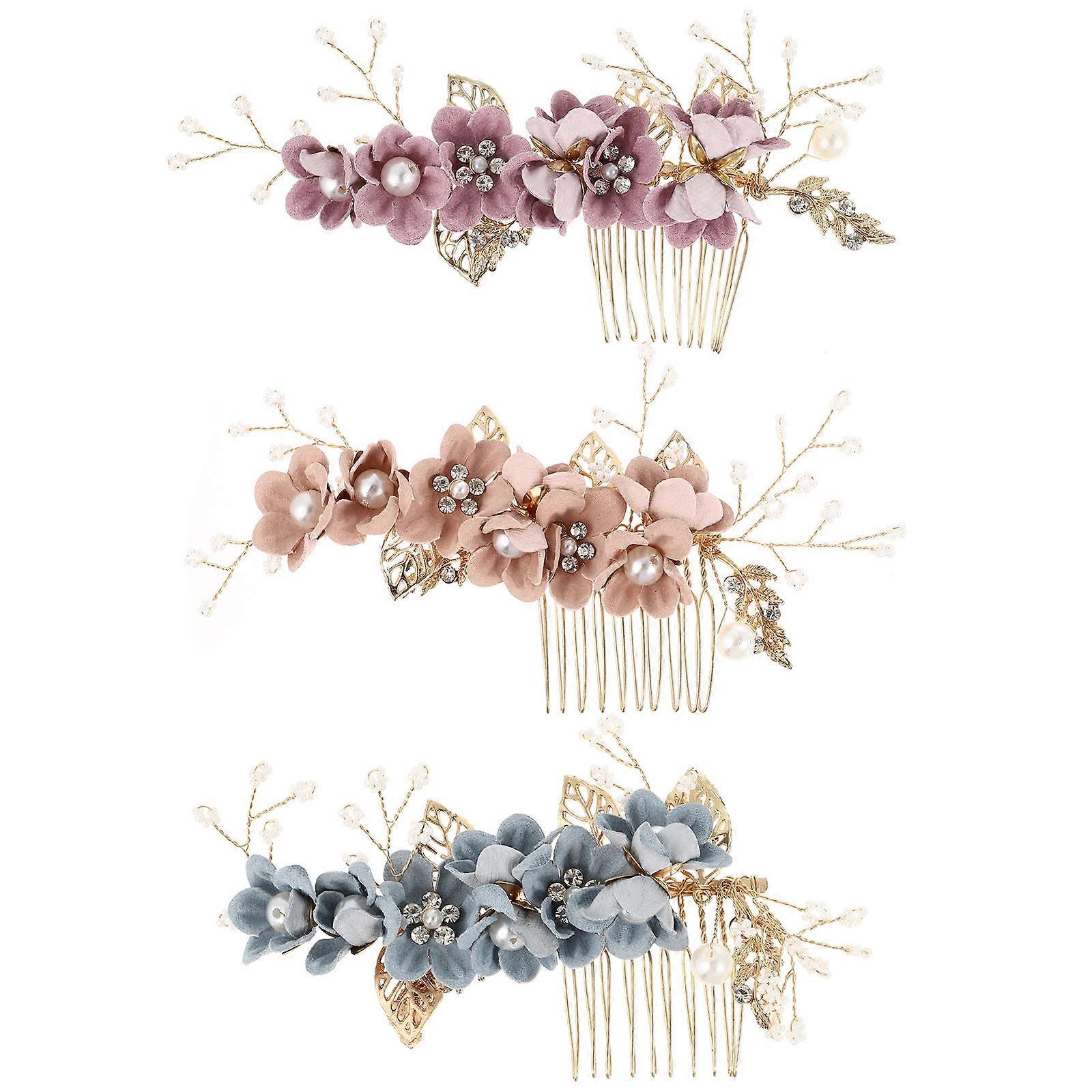 Bridal Hair Comb with Flower Design for Special Occasions Women Assorted Color Alloy 3 Pieces