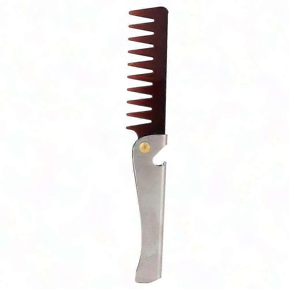 Vintage Folding Wide Teeth Hair Comb with Stainless Steel Handle for Salon & Home Use - Portable Oil Head Styling Comb