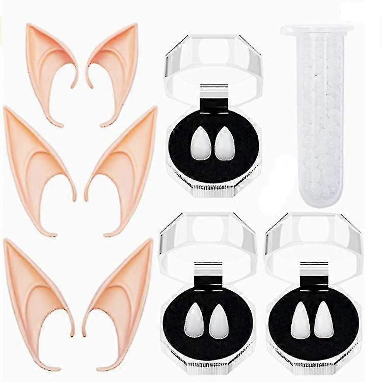 Vampire Fangs Kit Latex Elf Ears Adult Cosplay Fairy Pixie Elf Ears Vampire Teeth Fangs Halloween Party Cosplay Halloween
