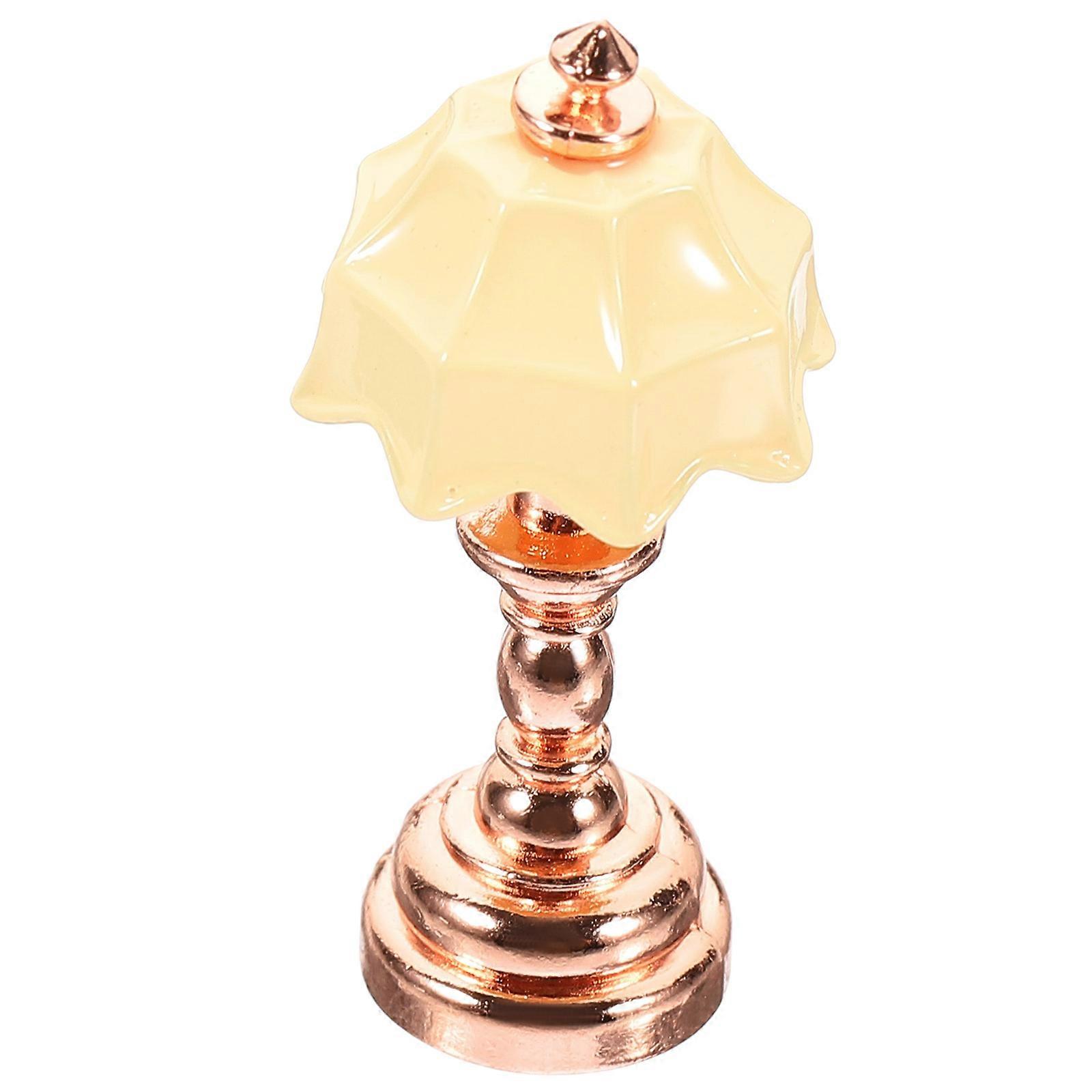 Rose Gold Metal Bedside Lamp with Beige Shade – Tiny Dollhouse Accessory for Pretend Play & DIY Craft Decor
