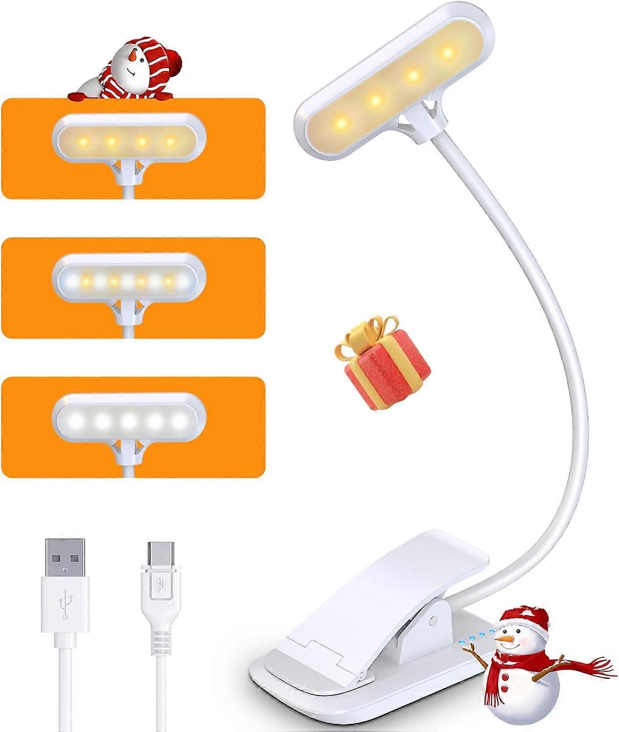 Reading Lamp, 9 LED Reading Light Lamp with 3 Color Temperature, USB Rechargeable, Flexible Book Lamp for Desk, 4 Levels Indicator, Reading in Bed, Tr