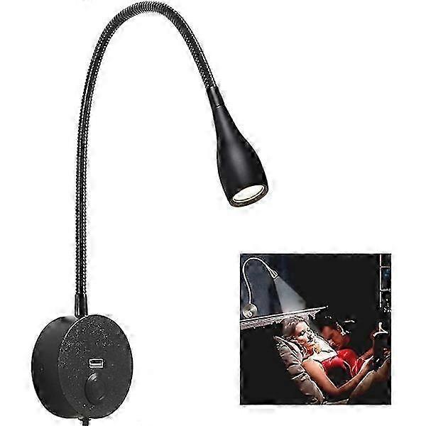 Dimmable Bedside Lamp, Minimalist LED Bedside Reading Lamp, Headboard Wall Mounted with USB Charger