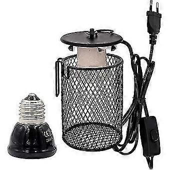 Ceramic Heating Lamp with Guard, Heater Lighting Infrared Reptile Heat Light Bulb Holder with Anti Hot Bracket Guard Cage for Tortoise/Lizard/Snake/Be