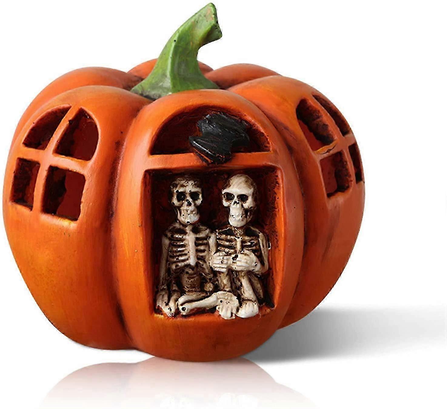 Halloween Pumpkin Skull Lamp, Creative Resin Hollow Pumpkin with LED Skull Light