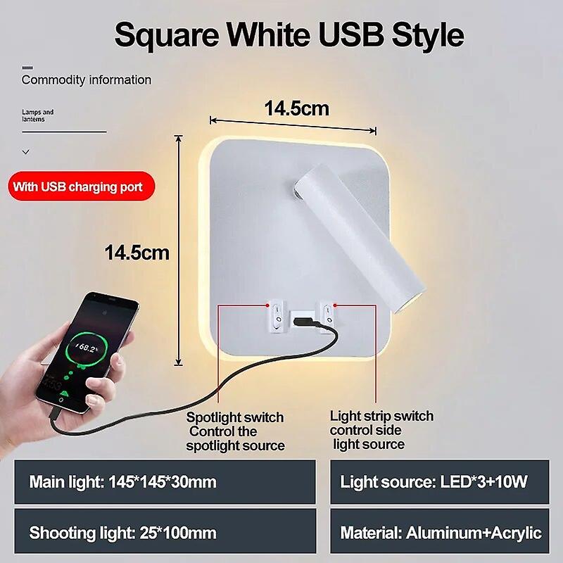 Rotatable Wall Lamp Hotel Living Room Bedroom Bedside Reading Night Lights Usb Charging Port Sconce Lamps Corridor Hallway Decor