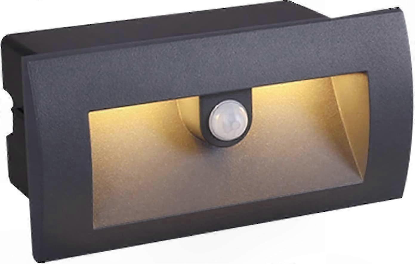 Recessed Wall Light With Motion Detector For Outdoor Use - 6 W - Led Ip65 - Waterproof - 3000 K - Warm White - Aluminum - Dark Gray