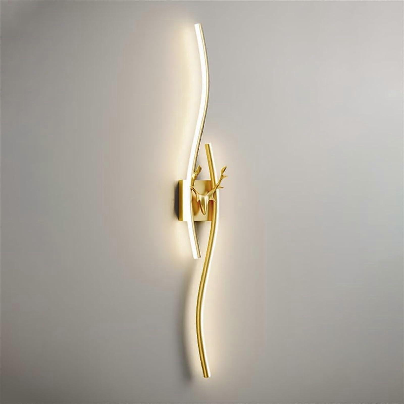 LED wall light with long strip in linear metal for bedroom, bed, interior 3 color modes, modern wall lights for living room, hallway (Gold, 60 cm)