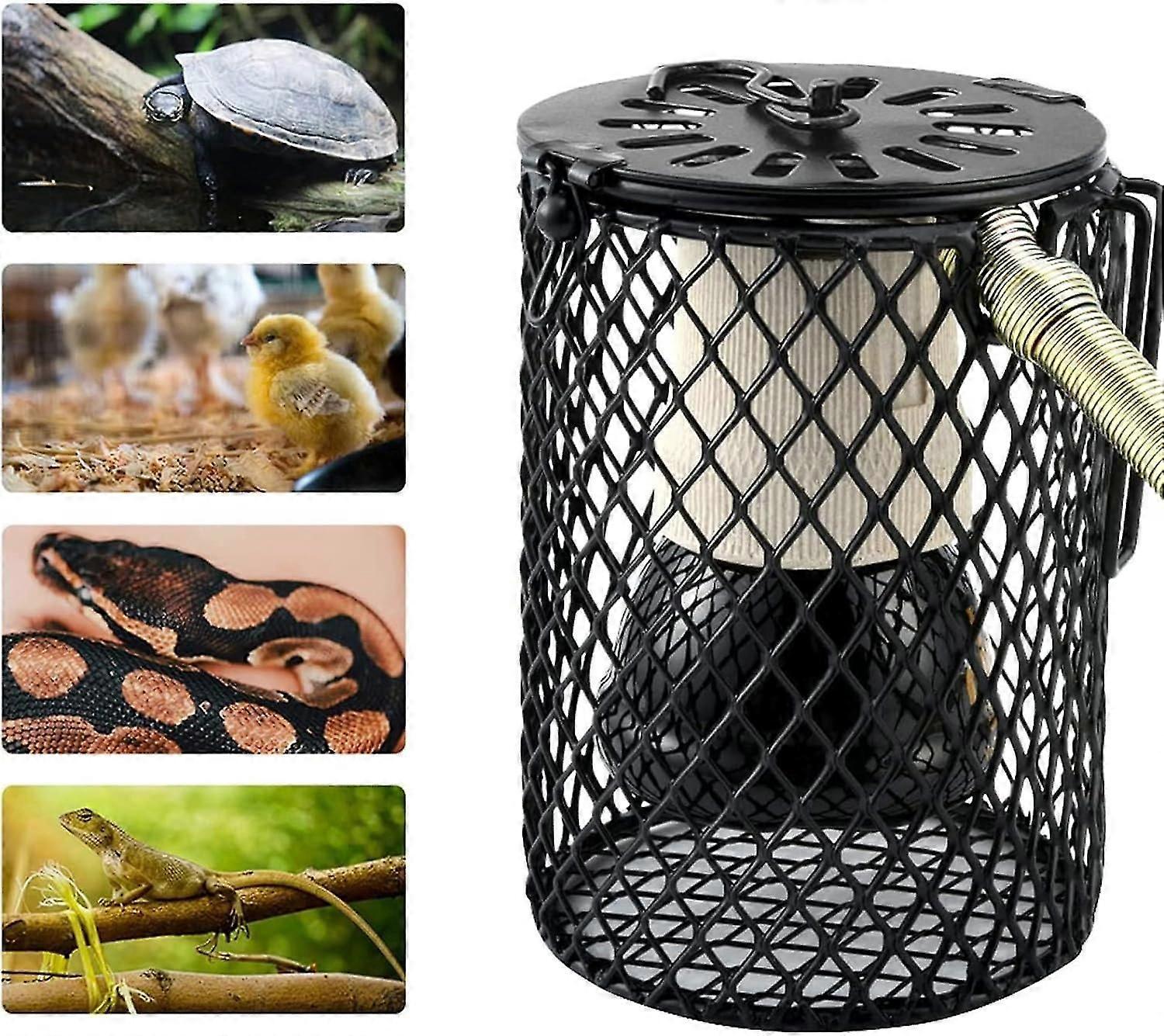 Reptile Heat Lamp With Guard, Reptiles Ceramic Heat Lamp Bulb Heater Infrared Lamp Holder With Anti Hot Bracket Cage