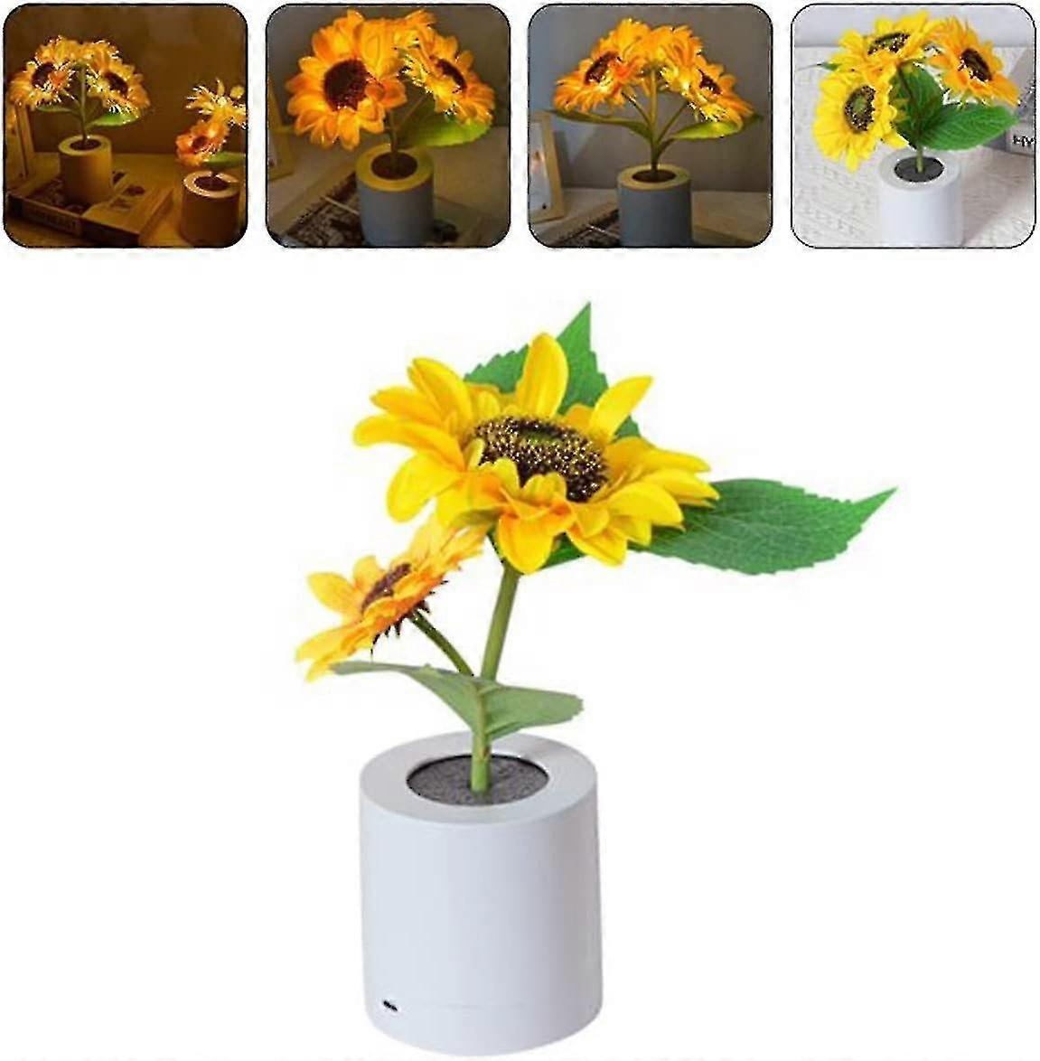 Sunflower Lamp, Sunflowers Led Table Lamp 2/3 Head Simulation Flower Night Light, Usb Rechargeable Sunflower Led Night Lamp, Sunflower Night Light Tab