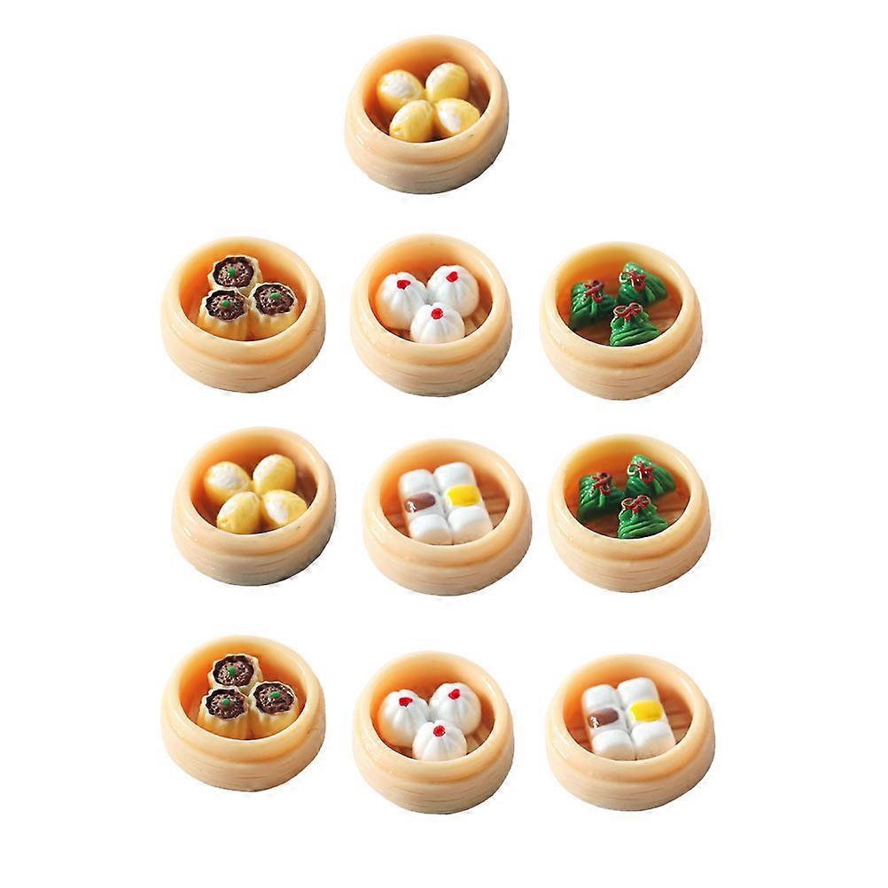 Miniature Chinese Steamed Buns Resin Food Models for Dollhouse Kitchen Decoration, Realistic Dumplings Sculptures for Mini Landscape Display, 10pcs