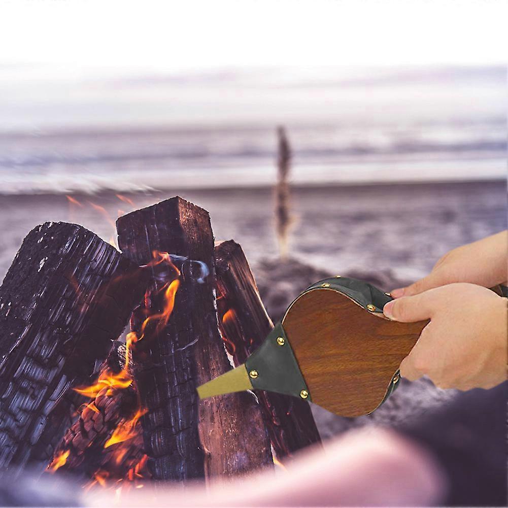Mini Fireplace Wooden Pattern Air Bellows with Hanging Strap for BBQ Fireplace Camping