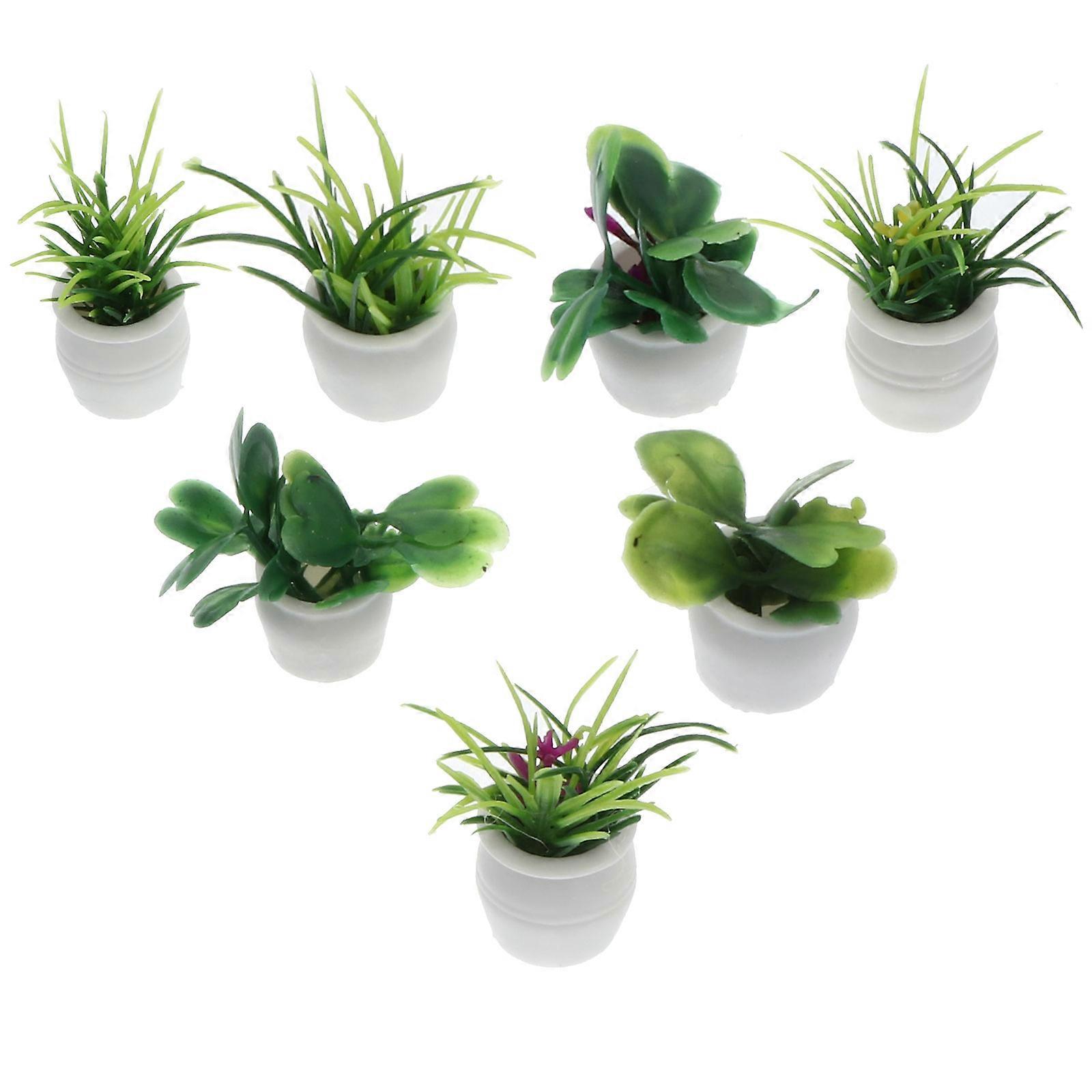 Miniature Decorative Fake Flower Pot Mini Potted Plants Mini House Decoration Assorted Color 7Pcs