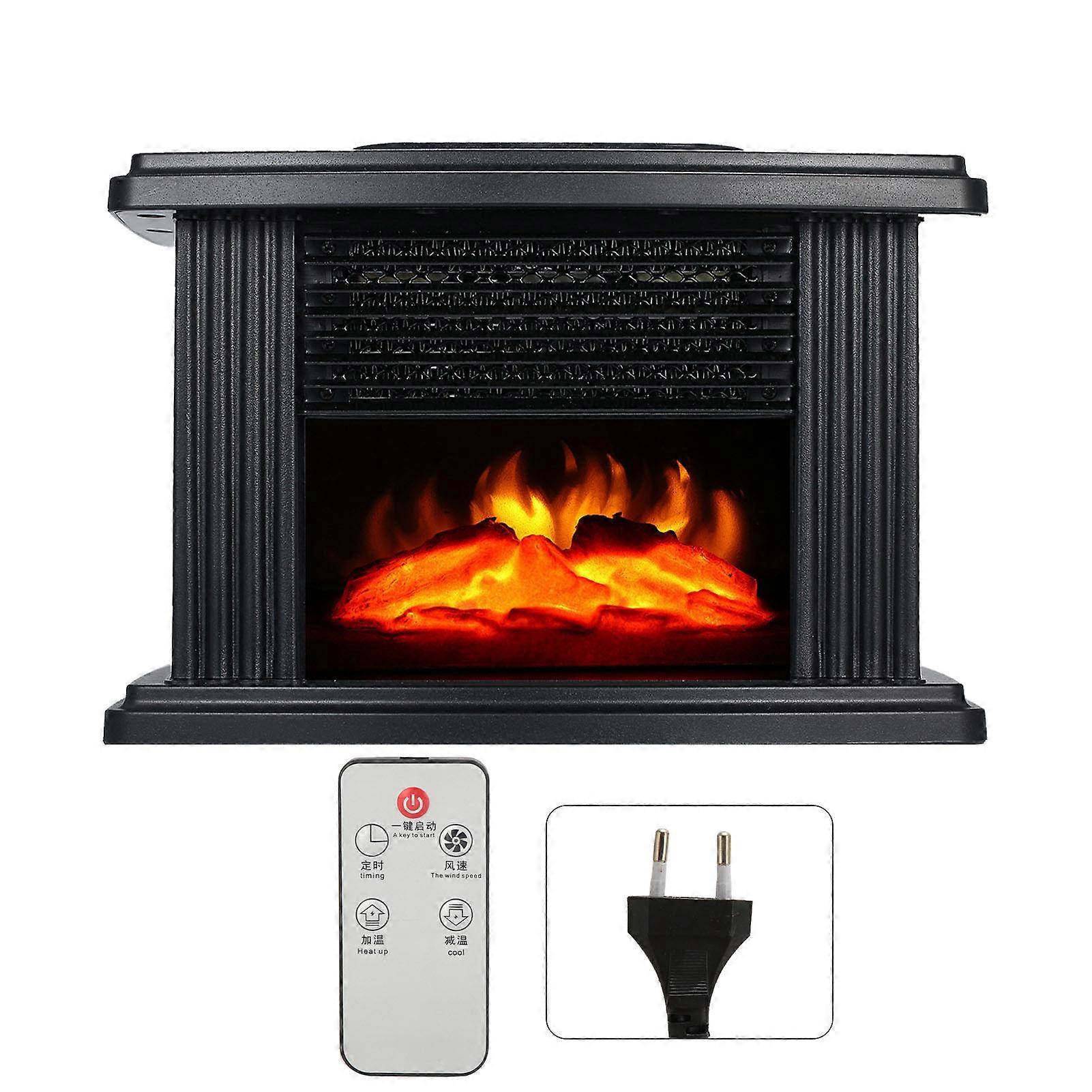 Mini Electric Fireplace Heater Simulated Flame Efficient Heating Quiet Operation Portable Fireplace Stove with Remote Control EU Plug 220V