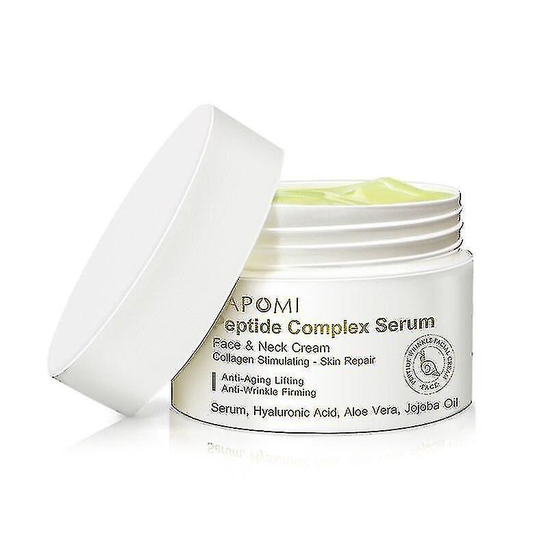 Peptide Complex Serum Collagen Anti-Wrinkle Essence Facial Skin Lifting Cream for Face Neck Chest Thight Anti-aging Skin Care About the product: Use Neck & Face Cream to help reduce the look of fine lines on your face chest and neck. Help moisturize your skin and address your top skin aging concerns with Anti-Wrinkle & Firming Face & Neck Cream. Clinically proven to visibly smooth fine lines on the chest and neck in just 4 weeks.(Note: This is related to each person's physical constitution.) Discontinue use in case of irritation. Ingredients: Palmitoyl tripeptide-1Palmitoyl tripeptide-7hyaluronic acid Aloe vera Jojoba oilHyaluronic acid etc. Size: 20g 30g 50g Packing list: 1pc\/2pcs\/3pcs*Wrinkle Cream