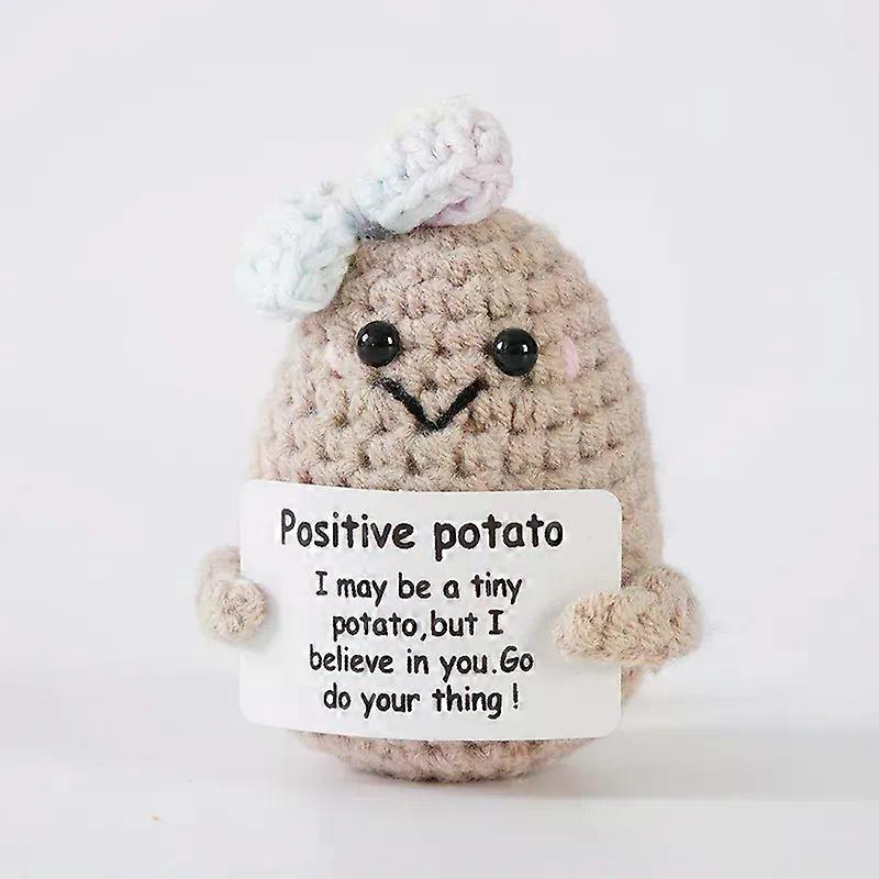 Funny Crochet Colorful Hat Potatoes With Card Home Room Decoration Handmade Knitted Positive Energy Potato Doll Christmas Gifts