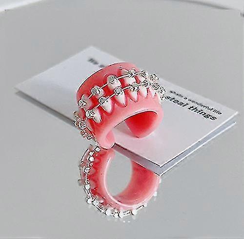 Funny Cute Braces Resin Teeth Ring Women Girl Couple Ring Ins Style Finger Ring